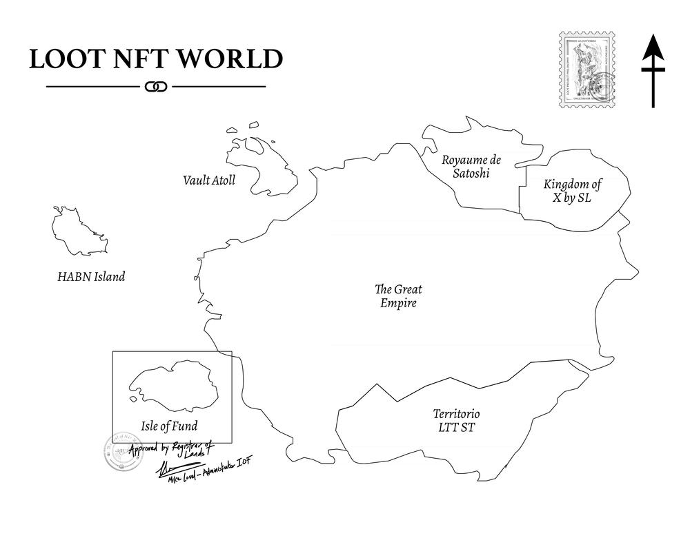 Isle of Fund HABN Island Vault Atoll Royaume de Satoshi Kingdom of X by SL Territorio LTT ST e Great Empire e S eal of Her M a j e s t y LOOT NFT WORLD Often known as the "paperwork" center of Loot NFT World, the Isle of Fund is the destination for landowners to manage their plots. Plots grant rights embodied in revenue-bearing NFTs (or RB-NFTs), such as minting of NFT stories, receiving USDC platform credit rewards from the World's economic activities, and more. Its people are the leaders in NFT-wrapped instrument experimentations which occurs at the Stakeholder's Building. e S eal of Her M a j e s t y Isle of FUND LOOT NFT WORLD COASTLINE BORDERS HIGHEST POINT LOWEST POINT PLOTS SCALE GEOGRAPHY 73.54 KM (45.70 MILES) OCEAN MOUNT PLUTUS +2349 M THE DWARF'S MINE -215 M 490 1:50000 THE FINANCIERS PORT OF FINANCE DEMETER'S OVERPASS MOUNT PLUTUS +2349 M POINT OF INTEREST (STAKEHOLDERS BUILDING) CRETOS THE DWARF'S MINE (BLOCKED) THE OLD TRACKS OF IASION 25.82 KM PLOT F036-221121 Isle of FUND LOOT NFT WORLD H.M.LNFTLandRegistry TITLE NUMBER ISSUED ADMINISTRATIVE AREA SCALE F036-221121 22 November 2021 ISLE OF FUND Type W-IOF: Share of 0.1% of all BUN sales based on number of NFT Stories minted (rewarded in Credits); Mint 4 NFT Stories 1/50000 OWNER ENTITLEMENT e S eal of Her M a j e s t y BOUNDARY: 2.20 KM MOUNT PLUTUS +2349 M XIANG ZU RIVER e S eal of Her M a j e OFFICIAL PERSPECTIVE SHEET FOR FILING Indicate vantage point for each drawing. Copy and mark each sheet required prior to filing. Guide - Vantage point should be indicated as shown in the diagram: